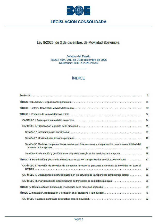 Ley 9/2025, de 3 de diciembre, de Movilidad Sostenible
