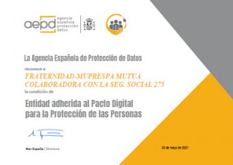 Acreditación de la adhesión de Fraternidad-Muprespa al Pacto Digital para la protección de las personas.