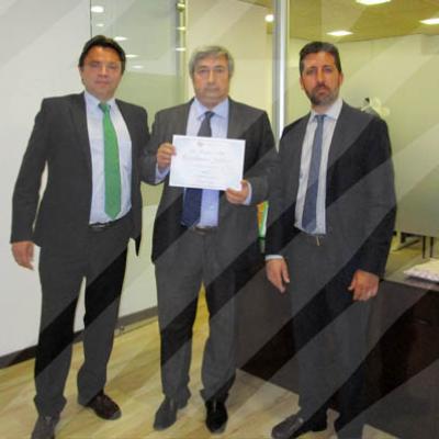 D. Fernando Moreno, Gerente de MARSEIN S.A. de Tarragona, ha recogido el diploma de manos del Director Territorial Noreste de Fraternidad-Muprespa D. Carlos Sáez de Juan y del Director Provincial de Fraternidad-Muprespa en Tarragona, D. Xavier Rofas Gasulla, quienes le han agradecido su participación.