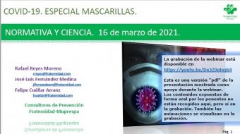 Presentación del webinar: “Mascarillas. Normativa y ciencia, celebrado el día 16 de marzo de 2021.