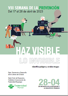 Dossier detallado del programa de actividades de la VIII Semana de la Prevención de Fraternidad-Muprespa: "Haz visible lo invisible, identifica peligros y evalúa riesgos" que se celebra del día 17 al 28 de abril de 2023.