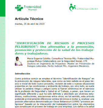 Artículo técnico escrito por María Eugenia Colotto, consultora de prevención de Fraternidad-Muprespa en Barcelona.
