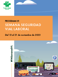 Programa detallado con las acciones que se realizan durante la VI Semana de la Seguridad Vial Laboral de Fraternidad-Muprespa con el lema: "Aparca las distracciones mientras circulas" que se celebra del 13 al 21 de noviembre de 2023.