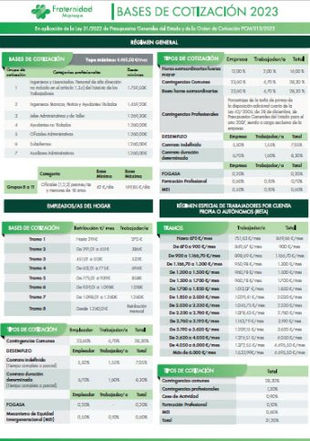 Infografía Bases de cotización 2023