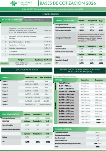 Infografía con las bases de cotización del 2026: