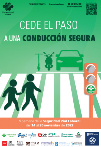 Programa detallado con las acciones que se realizan durante la V Semana de la Seguridad Vial Laboral de Fraternidad-Muprespa con el lema: "Cede el paso a una conducción segura" que se celebra del 14 al 18 de noviembre de 2022.