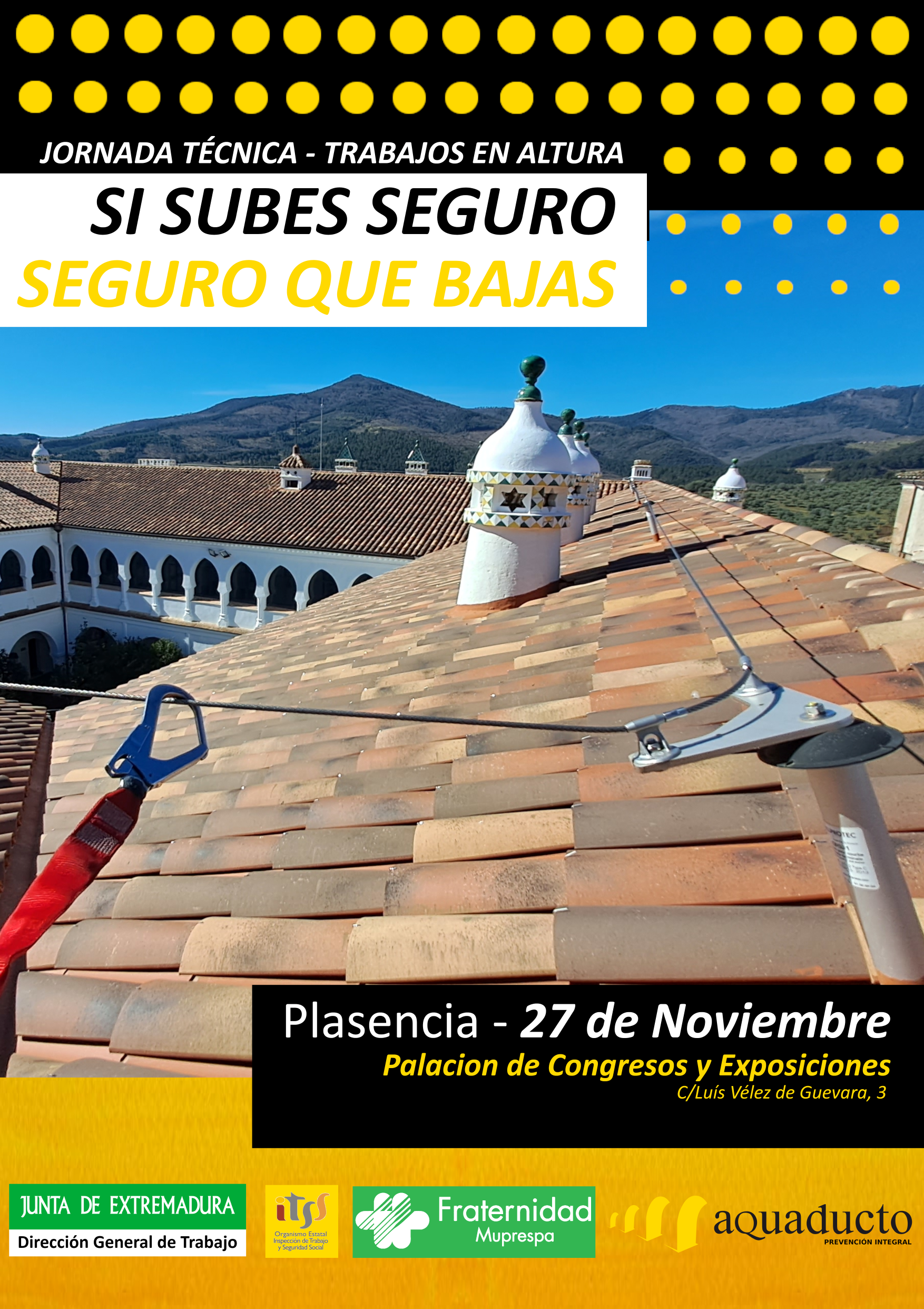 Fraternidad-Muprespa, Mutua Colaboradora con la Seguridad Social nº 275, participa en la jornada "Prevención del riesgo de accidentes laborales por caídas en altura en obras de construcción”, organizada por el Centro Extremeño de Seguridad y Salud Laboral (CESSLA) que se realizará el jueves 27 de noviembre en horario de 18:00 a 21:00 horas, en el Palacio de Congresos de Plasencia (Cáceres).