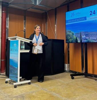 Lourdes Pardo presentando en Comunicaciones Médicos Asistenciales I