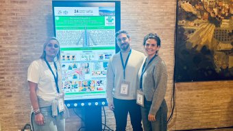 Laura Valtueña, Juan cuevas y Yolanda Collado con el Póster de Fisioterapia presentado