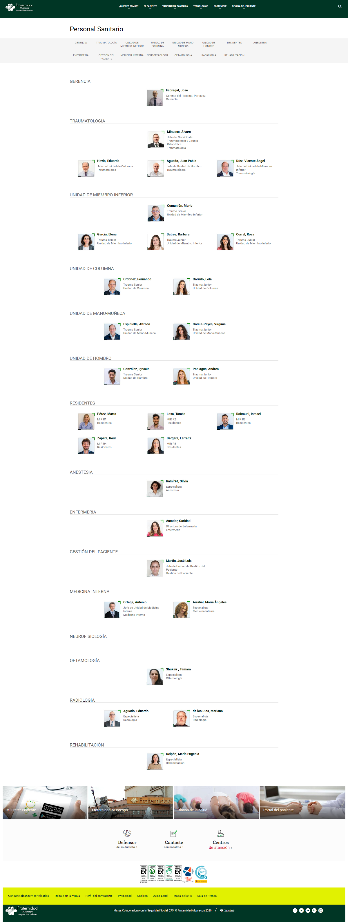 - Hospital Fraternidad-Muprespa Habana. El organigrama y directorio de profesionales del Hospital está disponible en nuestra web mejorado, también se actualiza el contenido de personal sanitario para mostrarlo en función de las áreas y secciones del hospital en lugar de con buscador alfabético.