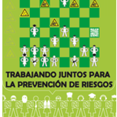 El liderazgo y la participación está simbolizados en nuestro poster por el equipo constituido por empresarios, mandos, trabajadores y delegados de prevención, por las distintas figuras del ajedrez, que luchan conjuntamente para ganar la partida a los riesgos en el trabajo simbolizados por las señales de peligro, que es el adversario. El trabajo en equipo siempre es más efectivo, por lo que van ganando la partida que está ya avanzada, eliminando los riesgos que han salido del tablero.