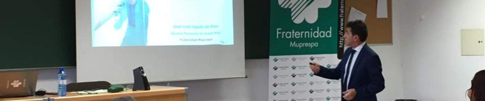 El pasado jueves 20 de diciembre se ha celebrado en la Universidad de Castilla la Mancha, una jornada en la que Fraternidad-Muprespa ha colaborado realizando una ponencia titulada “Qué somos y qué función tenemos en el mundo sanitario, la economía y la sociedad” impartida por José Luis Agudo, director provincial de Fraternidad-Muprespa en Ciudad Real. En la conferencia, José Luis Agudo ha repasado el origen de las mutuas, para que se crearon y las diferentes prestaciones que gestionan en la actualidad.