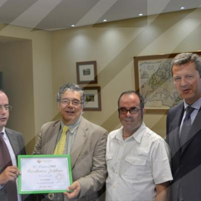 El diploma ha sido entregado por D. Jacobo Baró Pazos, Director Territorial de la Zona Noroeste de Fraternidad-Muprespa a D. Arturo López-Francos y D. Antonio López Francos, Presidente y Secretario de esta Sociedad Agraria de Transformación, que se dedica a la agricultura y a la ganadería ovina con un compromiso que se manifiesta en una inversión constante en innovación y adopción de nuevas tecnologías, encaminadas a la mejora de las condiciones de trabajo y de la prevención de riesgos laborales.