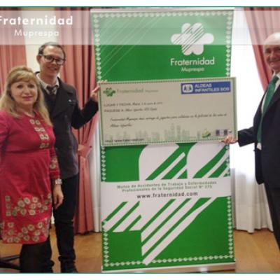 El cheque regalo ha sido entregado al representante de Aldeas Infantiles D. Manuel Sánchez, por D. Antero Fernández de la Mela, Secretario General de Fraternidad-Muprespa y por Doña María Concepción Ortiz Villar, Directora del Departamento de Responsabilidad Social Corporativa de la Mutua.