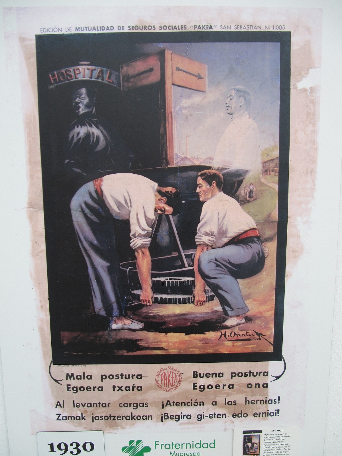 También explicó las especiales características de la exposición de carteles. Se trata de una selección de 50 imágenes pertenecientes a la colección privada VECA & MUGO, cuya temática está relacionada con la seguridad en el trabajo, la prevención y la salud laboral. La importancia de la muestra radica en que, en su momento, este tipo de carteles era la más eficaz técnica de difusión de información para llegar a gran cantidad de público, ya que gran parte de la población de la España de entonces era analfabeta.