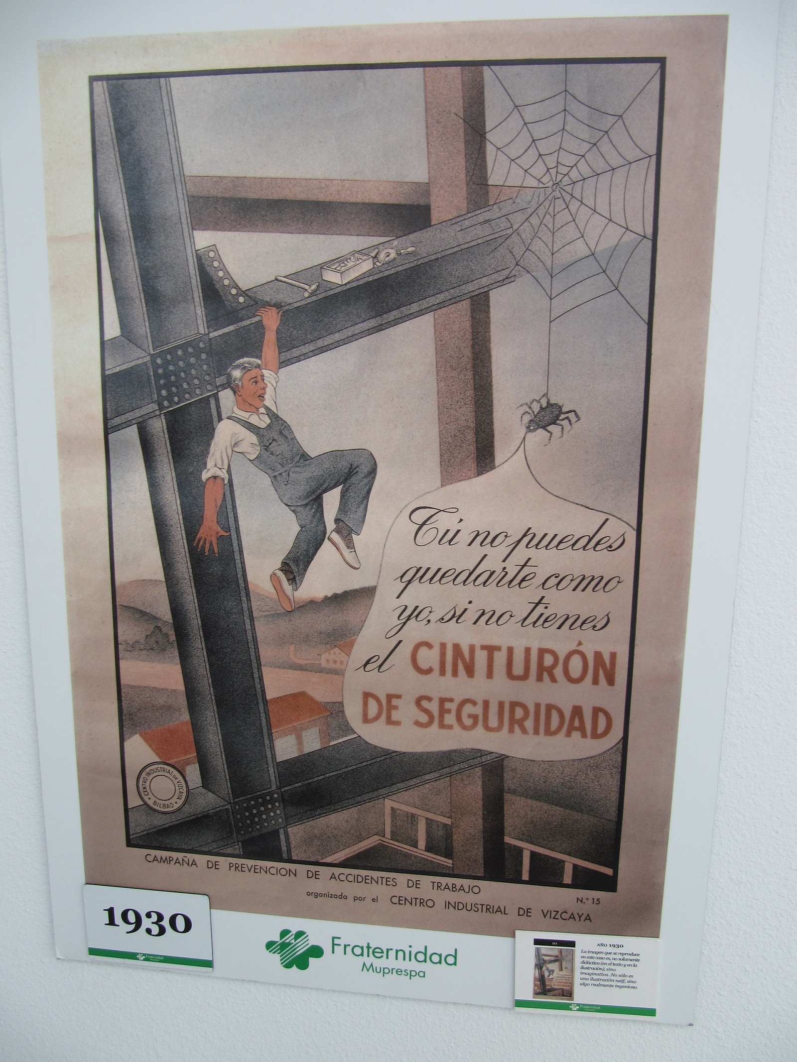 La exposición reúne 48 reproducciones de carteles del siglo XX, cuya temática es la seguridad en el trabajo, la prevención y la salud laboral, atendiendo a la evolución de la imagen de la prevención durante el pasado siglo.