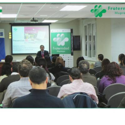 D. Javier de Benito Población, Técnico Superior P.R.L. del Departamento de Prevención A.T. y E.P. de Fraternidad-Muprespa, dada su labor encomendada por el Ministerio de Empleo y Seguridad Social y todo ello dentro del marco de la Estrategia Española de Seguridad y Salud en el Trabajo 2007-2012, explico a los presentes el nuevo Servicio Público de asesoramiento a microempresas y trabajadores autónomos, Prevencion 10, así como la plataforma de formación moodle (Aula de Prevencion) que la Mutua ofrece a sus asociados.
