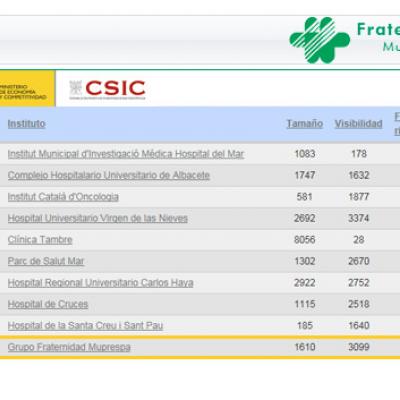 El “Ranking Web de Hospitales del Mundo” que anualmente realiza el Laboratorio de Cibermetría del CSIC (Centro Superior de Investigaciones Científicas) sitúa los portales Web de Fraternidad-Muprespa en la 10ª posición en España, 126ª en Europa y la 503ª a nivel mundial, sobre un total de 17.261 portales analizados.