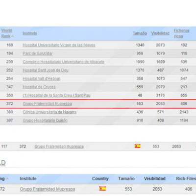 En el ámbito europeo, Fraternidad-Muprespa ocupa el puesto 117 entre las 6.346 webs de instituciones sanitarias europeas, y el 372 a nivel mundial, entre un total de 11.999 webs estudiadas.