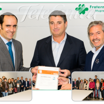 Telefónica empresa asociada a la Mutua colaboradora con la Seguridad Social, Fraternidad-Muprespa ha recibido de manos de Applus+, primera multinacional de certificación, inspección y ensayos de España, la certificación de Empresa Saludable, que tiene una validez trianual y seguimiento anual.