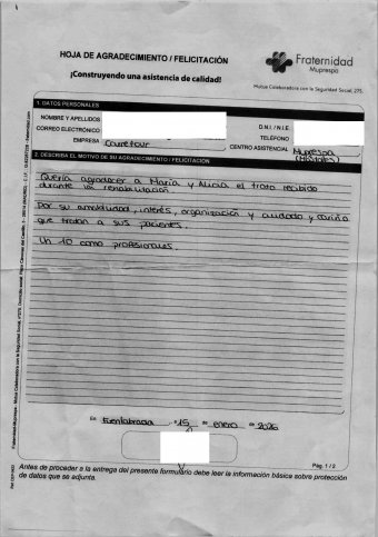 Quería agradecer a María y Alicia el trato recibido durante la rehabilitación. Por su amabilidad, interés, organización y cuidado y cariño que tratan a sus pacientes. Un 10 como profesionales.