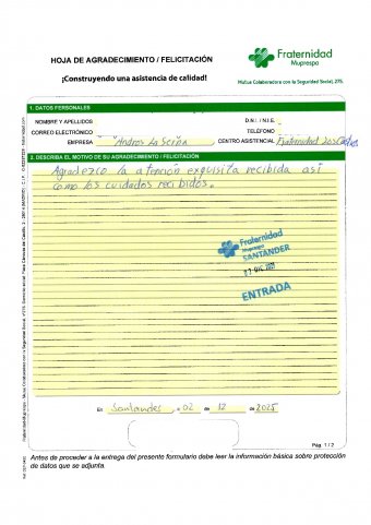 Agradezco la atención exquisita recibida así como los cuidados recibidos.