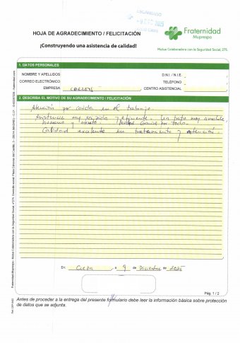 Atención por caída en el trabajo. Asistencia muy rápida y eficiente. Un trato muy amable, humano y atento. Muchas gracias por todo. Calidad excelente en tratamiento y atención.
