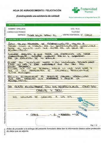 Solo tengo palabras de agradecimiento, tanto a Desiré como a Carlos, por su profesionalidad indiscutible desde el minuto uno que entre por la sala de rehabilitación. Siempre atentos a que todos los ejercicios los haga correctamente, siempre mirando por mí y sobre todo por la evolución de mi rodilla. Entré con muchísimo miedo y con muchísimos dolores hace justo un mes, y era impensable que en tan poco tiempo bajaran. Dolores que no me dejaban dormir ni una sola hora y que ni con tratamientos se calmaban, produciéndome mucha ansiedad. Felicito enormemente el ambiente laboral maravilloso que hay, haciendo muy agradable y amena la rehabilitación. Da gusto encontrarse con dos profesionales como son CARLOS Y DESI. Mill millones de gracias a los dos.