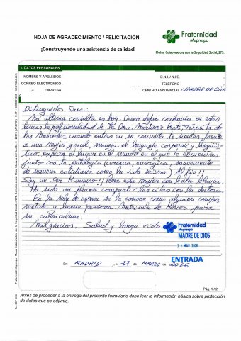 Testimonio Anónimo en el centro Madrid - Madre de Dios