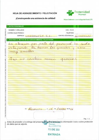 La atención por parte del personal ha sido estupenda los damos las gracias y son muy amables. Que no cambien nunca. Gracias