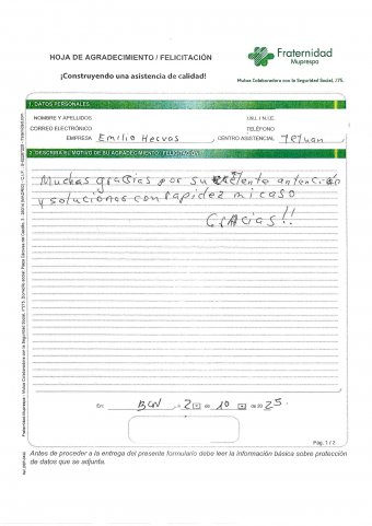 Muchas gracias por su excelente atención y solucionar con rapidez mi caso. Gracias!!