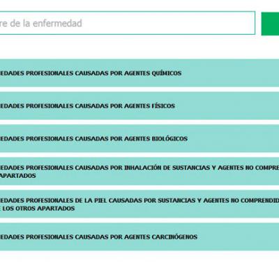 Dentro da nova ferramenta, pódense encontrar as patoloxías a través de dous sistemas de busca: ou ben escribindo directamente o termo que se desexe encontrar (buscador de termos) ou ben navegando polos distintos niveis (navegación ata catro niveis de detalle de subclasificación) dunha listaxe composta polos seis grandes grupos nas que están clasificadas as enfermidades profesionais.